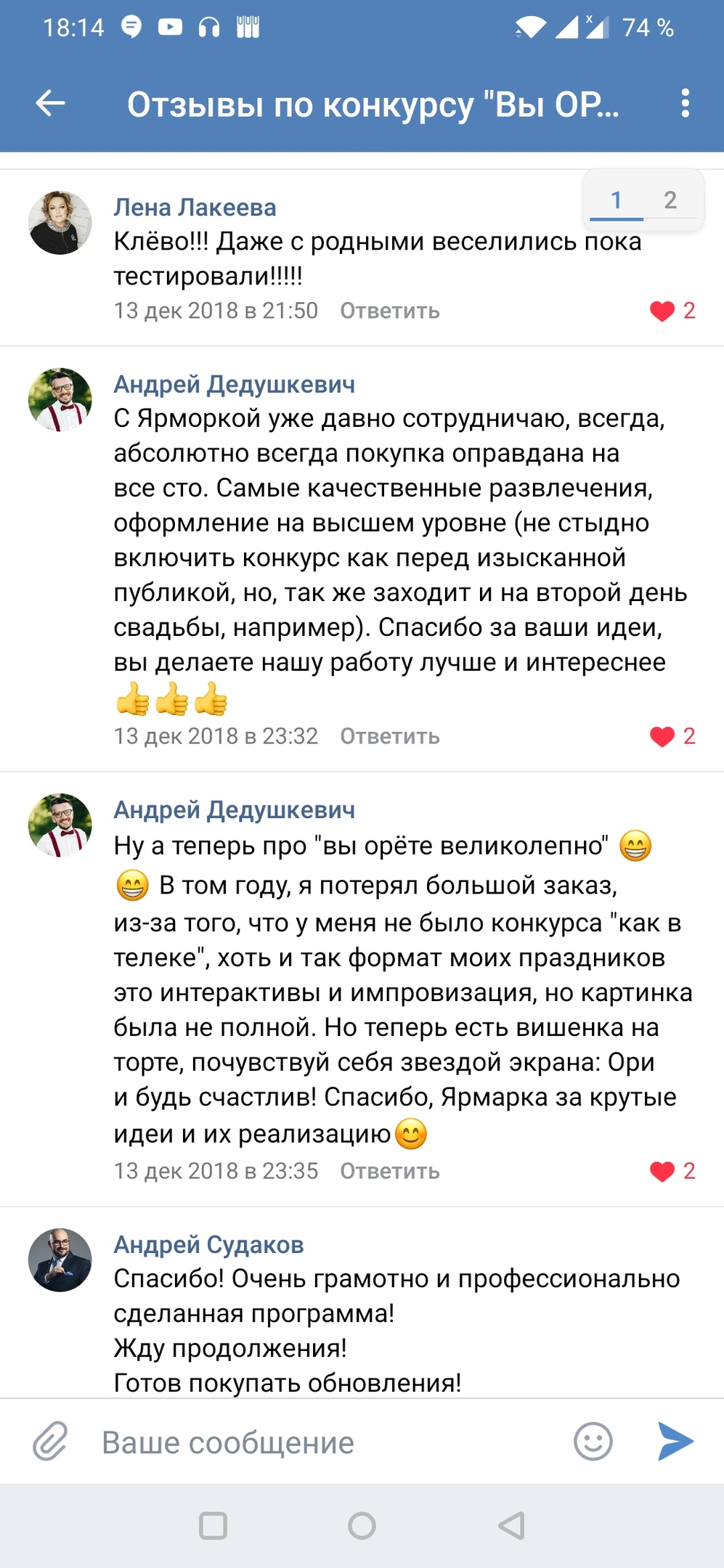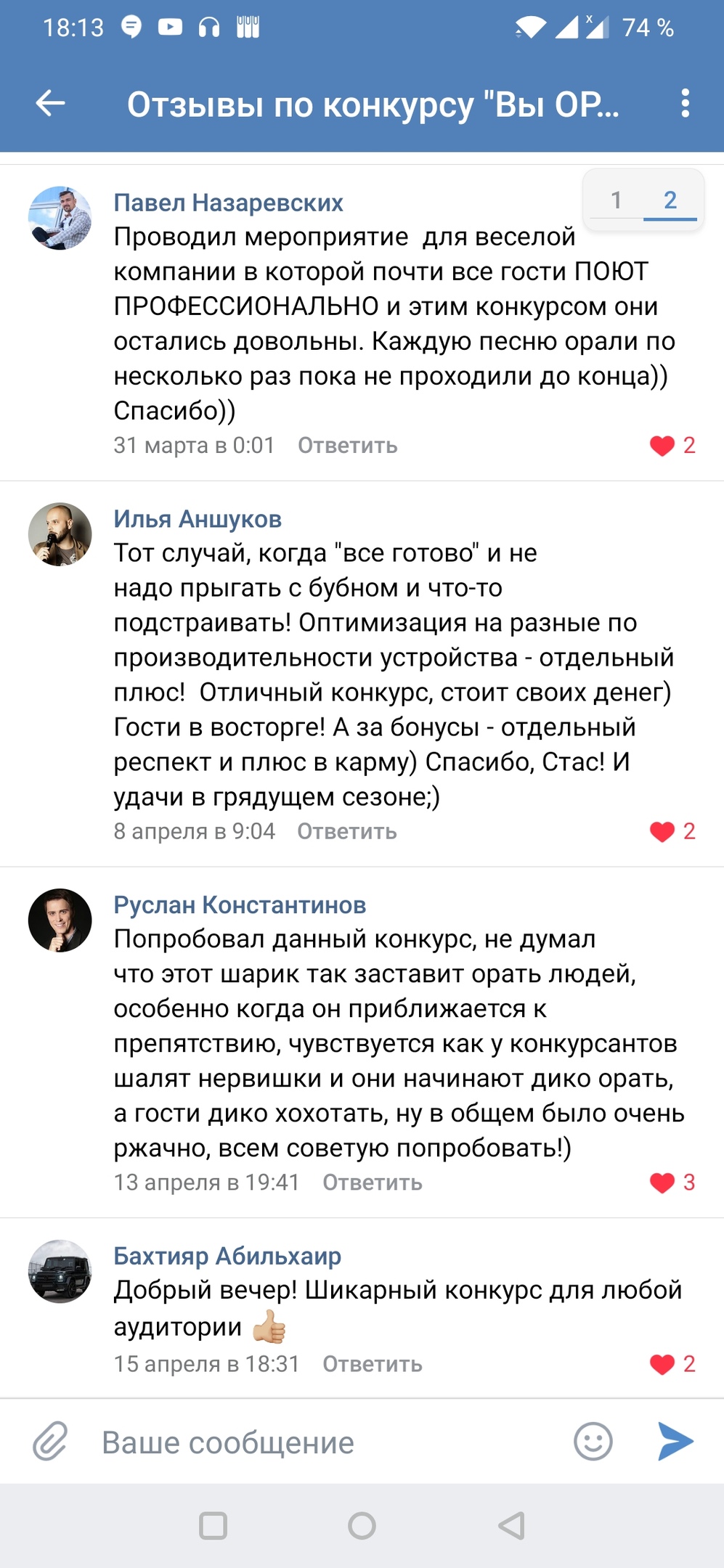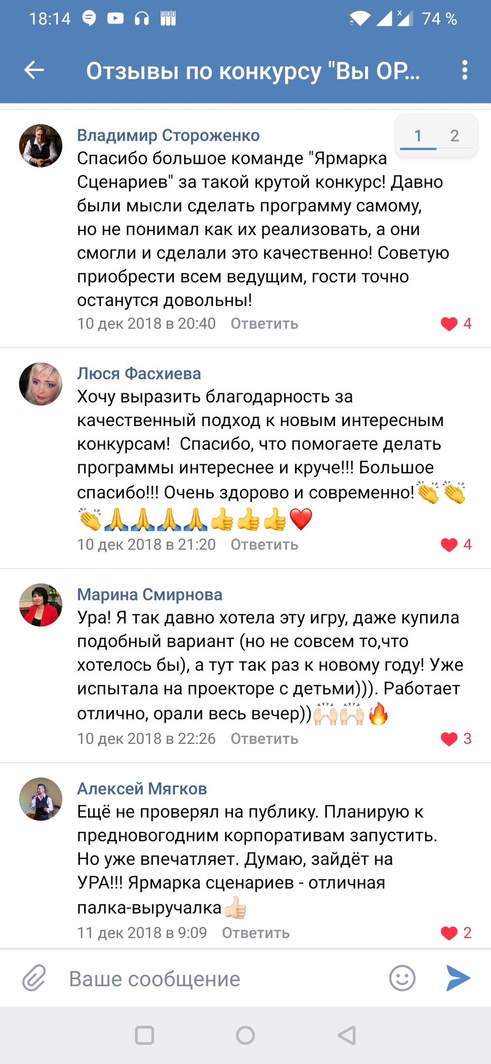 Эти отзывы ведущие оставили в нашей группе ВК: https://vk.com/topic-108204564_39154093