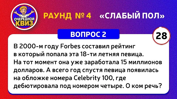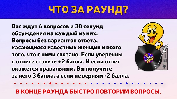 ✅ Слабый пол: Интеллектуальный раунд в стиле «Что? Где? Когда?».