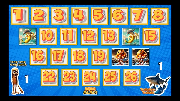 В игре 2 раунда по 26 ячеек (13 пар мемов).