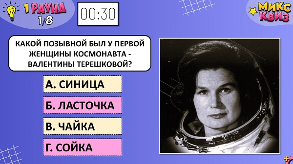 1 РАУНД «РАЗМИНКА» - 8 вопросов, 4 варианта ответа, 30 секунд на обсуждение.