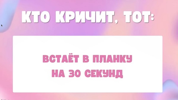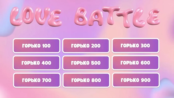 💡 Суть: Каждый, кто выкрикнул «Горько!», выбирает ячейку с заданием. Без штрафов — только фановое наказание!