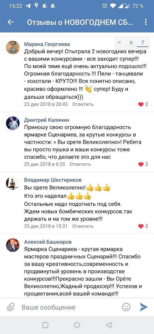 Эти отзывы ведущие оставили в нашей группе ВК: https://vk.com/topic-108204564_36064712