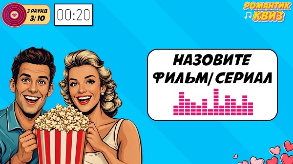 3 РАУНД «МЕЛОДРАМА» - 10 песен, задача записать название фильма или сериала, 20 секунд на обсуждение.
