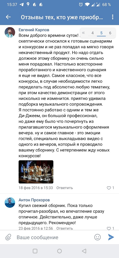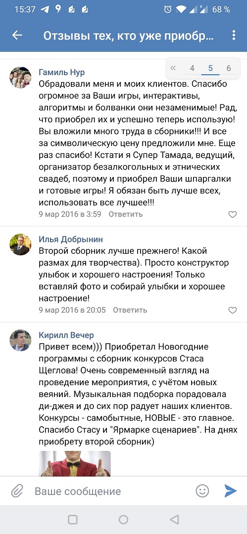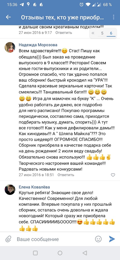 Эти отзывы ведущие оставили в нашей группе ВК: https://vk.com/topic-108204564_32686201